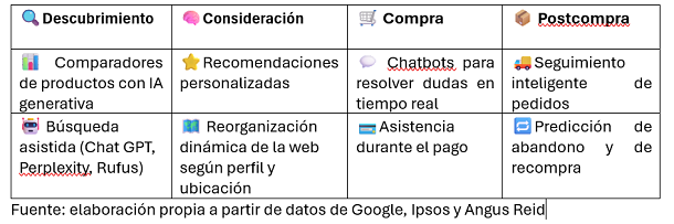 Aplicaciones de IA a lo largo del viaje del consumidor